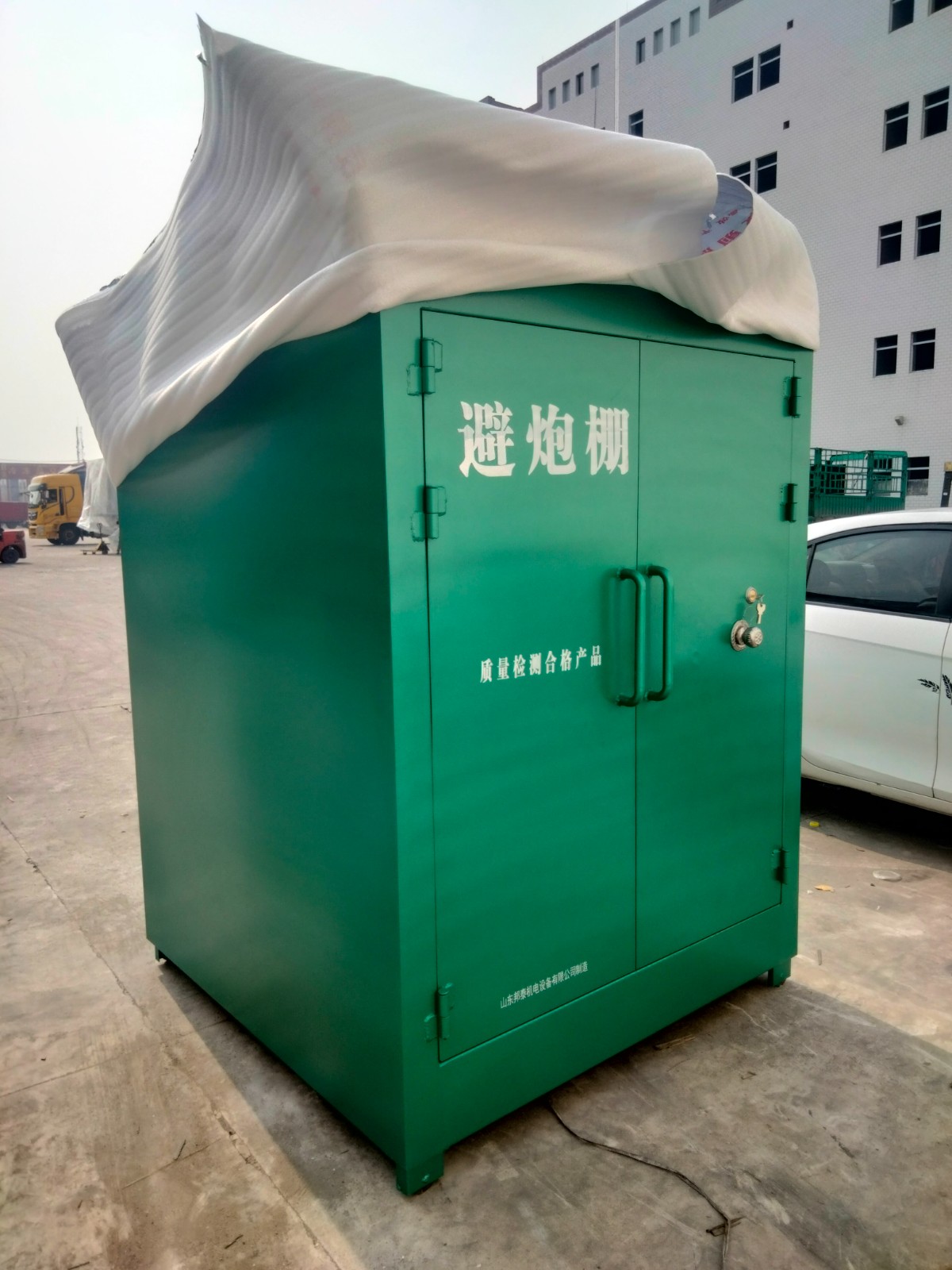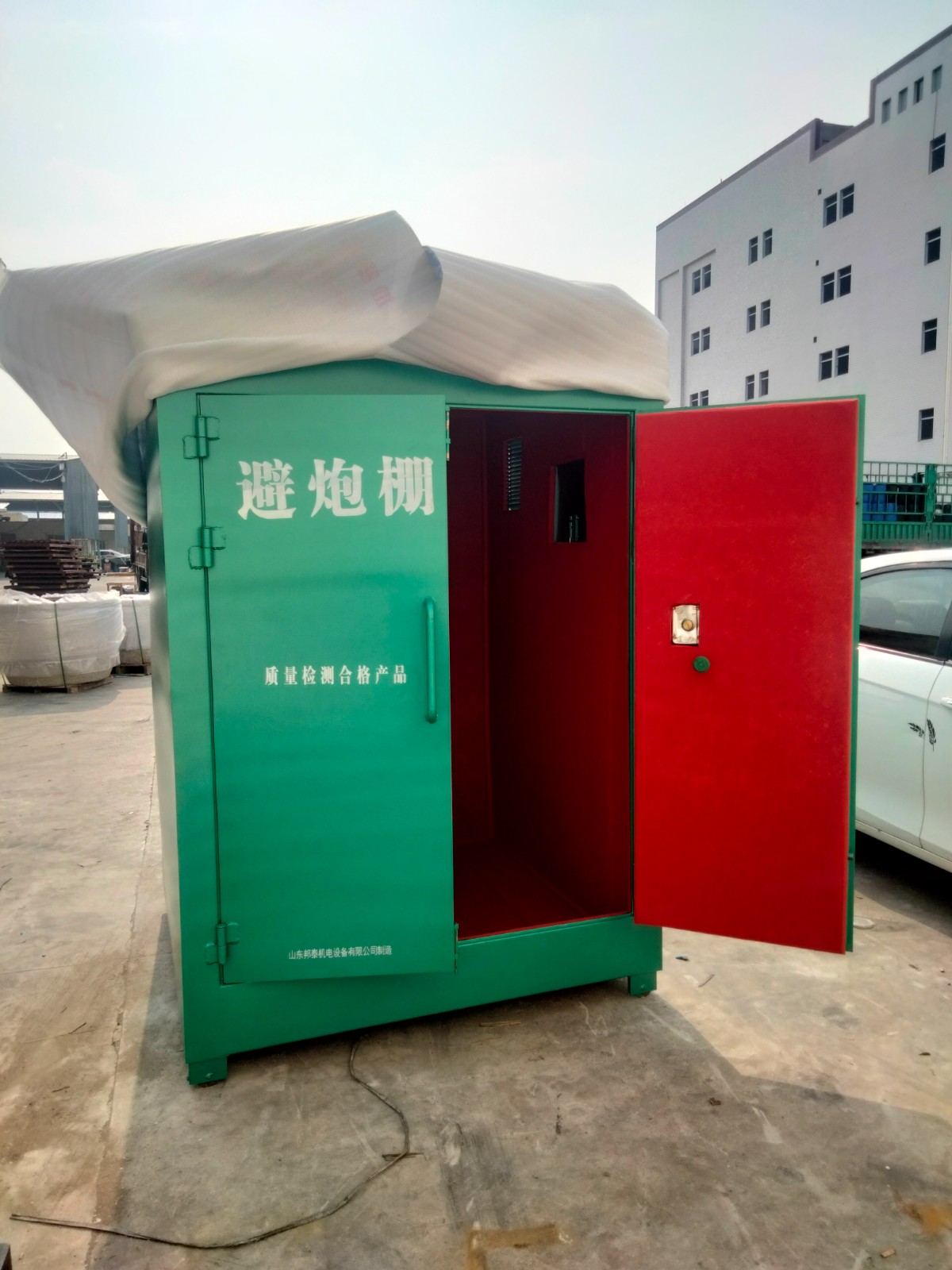 功能作用  ;  ;防護飛石沖擊:在礦山爆破作業中,會產生大量高速飛散的石塊,避炮棚采用堅固的材料和結構設計,如高強度鋼板、鋼筋混凝土等,能夠有效阻擋飛石,防止其對人員造成傷害。  ;  ;抵御沖擊波:爆破瞬間產生的強大沖擊波具有巨大的破壞力,避炮棚的結構和材料可以吸收和衰減沖擊波的能量,減少沖擊波對內部人員的沖擊和傷害。  ;  ;提供安全避難空間:為爆破作業人員提供一個相對安全的封閉空間,使其在爆破期間能夠躲避在其中,避免直接暴露在危險環境中,保障生命安全。  ;  ;通風與換氣:配備良好的通風系統,如通風口、風機等,能夠及時排出爆破后產生的有害氣體,如一氧化碳、氮氧化物等,為人員提供新鮮的空氣,確保呼吸安全。結構設計  ;  ;框架結構:通常采用框架式結構,以高強度的型鋼或鋼管作為骨架,如鋼材屈服強度不低于 345MPa 的鋼結構,通過焊接或螺栓進行牢固連接,形成穩定的幾何結構,如三角形框架結構,利用三角形的穩定性原理,將沖擊力均勻分散到各個構件上,增強整體的穩定性和剛性。  ;  ;復合防護層:頂棚和側壁采用多層次的復合結構,一般包括承重層、緩沖層和防護層。承重層主要承擔整個棚體的重量以及爆破產生的壓力;緩沖層多采用具有彈性的材料,如橡膠、海綿等,能夠吸收和緩沖沖擊波的能量;防護層則選用高強度的鋼板或鋼筋混凝土,抵御飛石的撞擊。  ;  ;門窗設計:門窗應設計為易于開啟和關閉,方便人員進出,同時在開口處設置雙層防護門,防護門采用與抗沖擊層相同的材料制作,在爆破時關閉,有效阻擋飛石進入。窗戶一般會采用防爆玻璃窗,既可以讓人員觀察爆破過程,又能防止飛石和沖擊波的破壞。