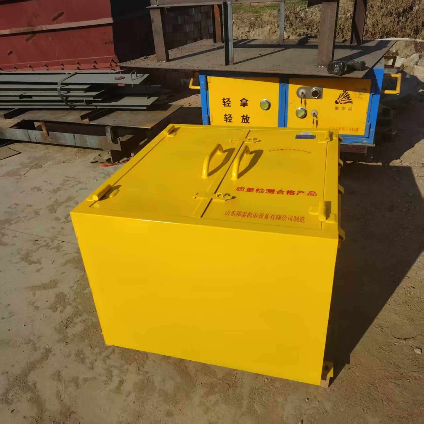 車廂部分:通常采用 6-8mm 厚的防爆鋼板制成,具有高強度和抗沖擊性能,能有效防止爆炸沖擊波和碎片的擴散。內部鋪設 10mm 厚的絕緣木板及 2mm 厚的防火防震防靜 電的阻燃墊,可起到緩沖、隔熱、防靜電的作用,確保爆破物品的安全存放。