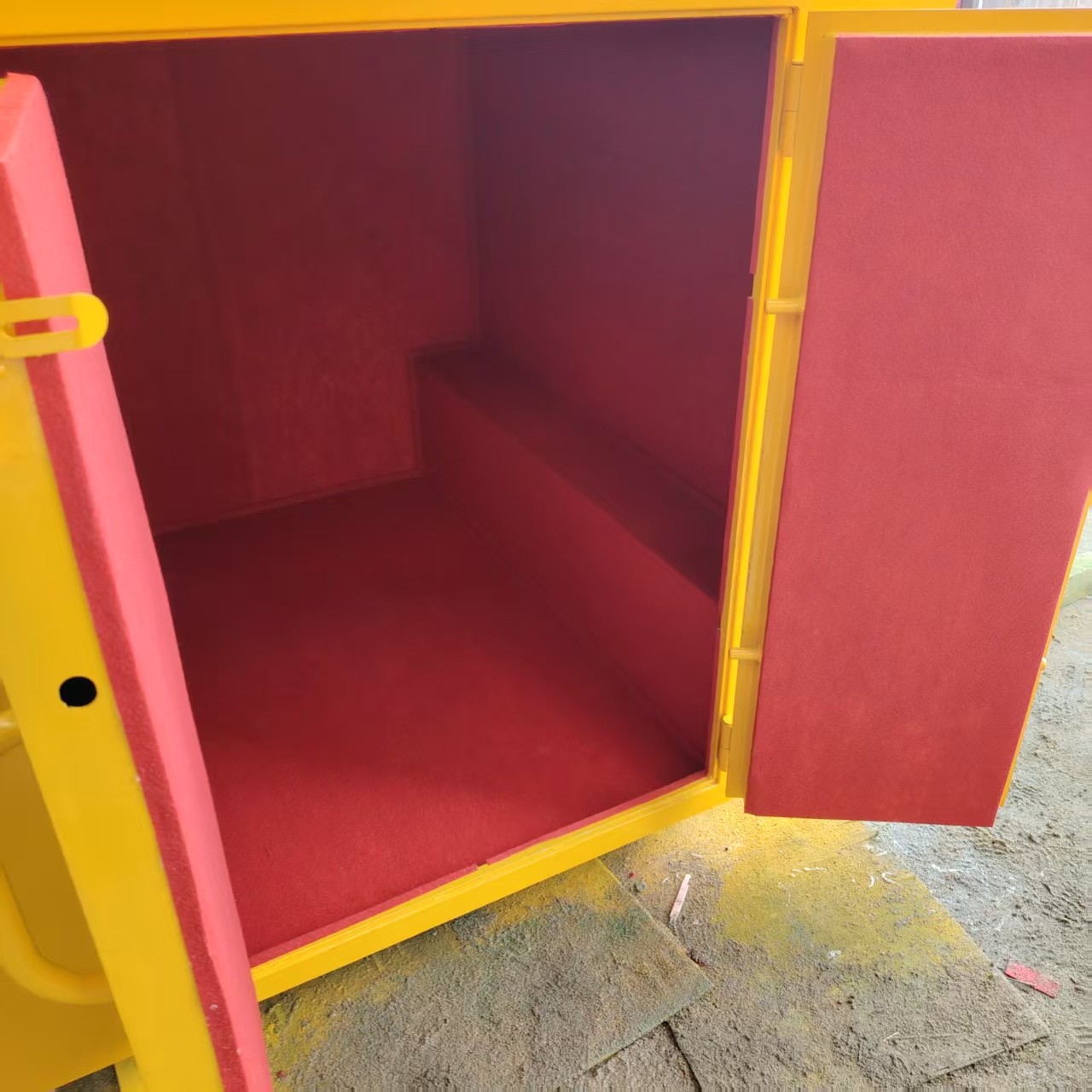 車廂部分:通常采用 6-8mm 厚的防爆鋼板制成,具有高強度和抗沖擊性能,能有效防止爆炸沖擊波和碎片的擴(kuò)散。內(nèi)部鋪設(shè) 10mm 厚的絕緣木板及 2mm 厚的防火防震防靜 電的阻燃墊,可起到緩沖、隔熱、防靜電的作用,確保爆破物品的安全存放。