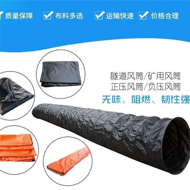 在選擇風筒布時,根據場景確定所需的送風量,從而選擇合適直徑和長度。如果是在大型隧道施工中,需要較大的送風量,就應選擇直徑較大的風筒布。除了正壓風筒,還有負壓風筒,負壓風筒是抽風的,就需要鋼圈鏈接。風筒有常規直徑風筒、Y型三通風筒還有變徑式風筒。