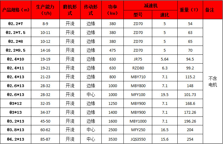 水泥球磨機技術參數: