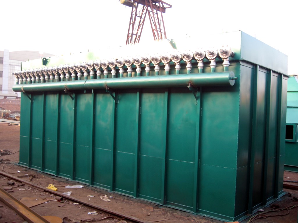布袋除塵器由上箱體、中箱體、灰斗、導流板、支架、濾袋組件、噴吹裝置、離線閥、卸灰閥、頂部防雨棚及檢測、控制系統等組成。整套除塵器還包括檢修平臺、照明系統、檢修電源、輸灰系統等。