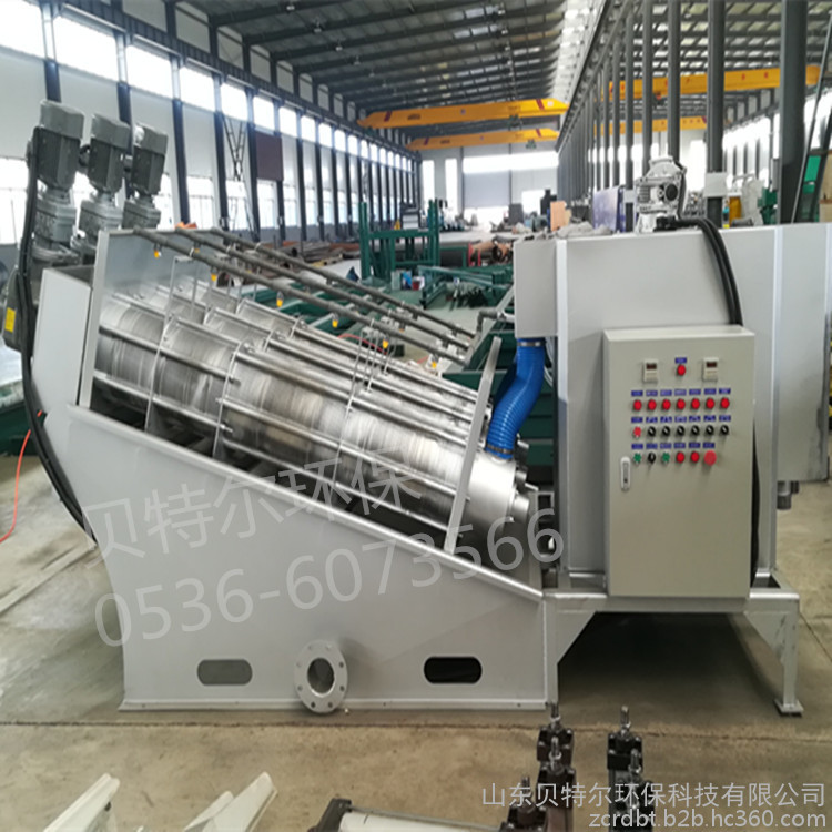 1、濃縮:當螺旋推動軸轉動時,設在推動軸外圍的多重固活疊片相對移動,在重力作用下,水從相對移動的疊片間隙中濾出,實現快速濃縮。