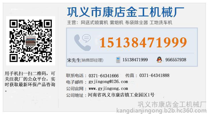 ??鞏義市康店金工機械廠,我廠主要生產:脈沖布袋除塵器(袋式除塵器)、鍋爐脫硫除塵器、霧炮設備等適應于各工況煙氣抑塵設備,以及選粉機設備、烘干設備等,咨詢熱線:0371-64341666,手機:13598056999,微信號:**jxc