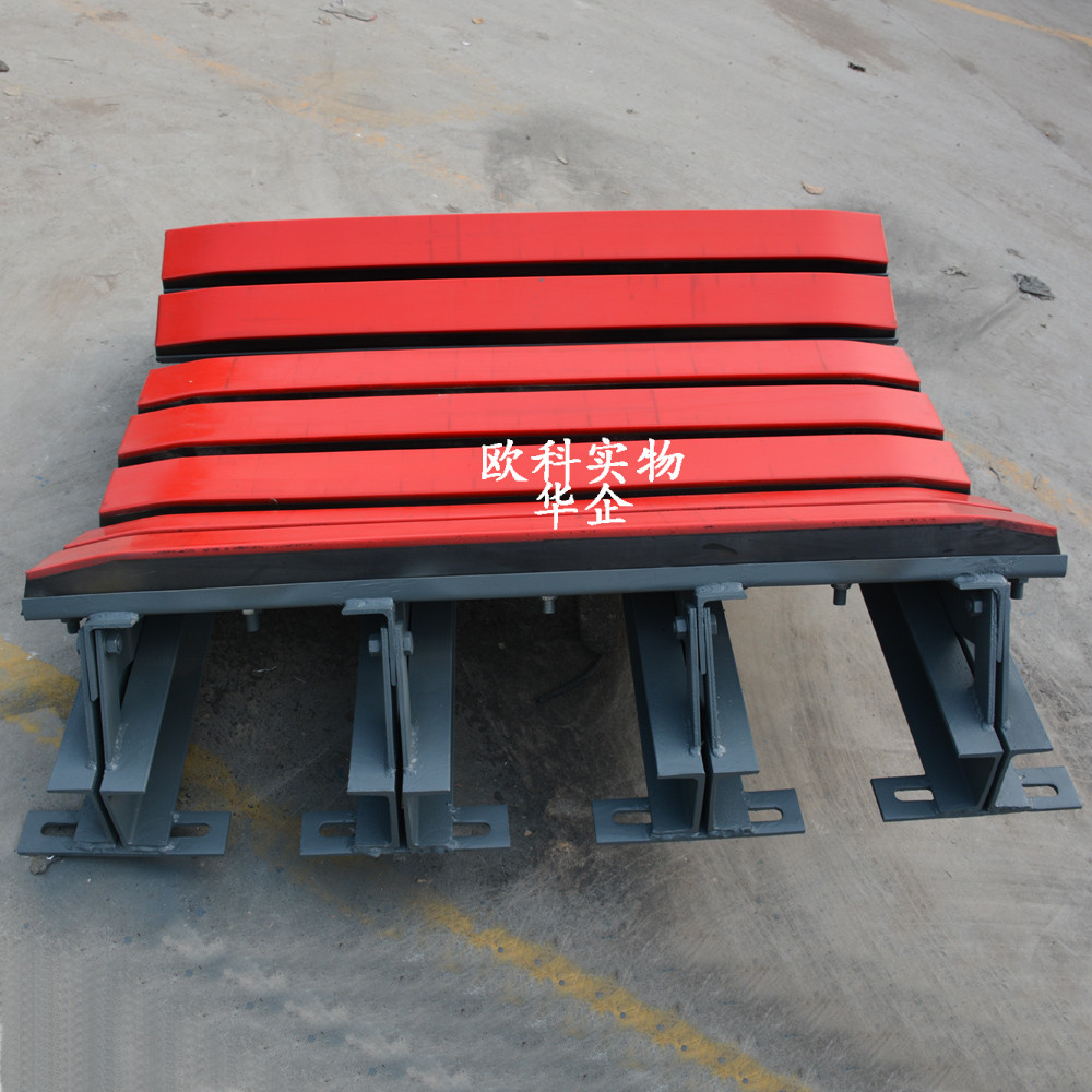 緩沖床由兩部分組成,包括耐用美觀的緩沖條還有支撐力度強(qiáng)的緩沖支架。緩沖條在工作中起著關(guān)鍵性的作用,礦下用的緩沖床必須用防靜電抗阻燃的,所以對緩沖條的要求特別高,采用加厚聚乙烯層,應(yīng)用更廣泛,產(chǎn)品更耐用。聚乙烯表層的前后端均成弧形,從而保證了送帶通過時的順滑。性能優(yōu)良的特種橡膠層有效吸收物料下落時的沖力。光滑的UHMW聚乙烯表面將送帶與緩沖條的摩擦降至。緩沖床的支架采用牢固的鋼支架。