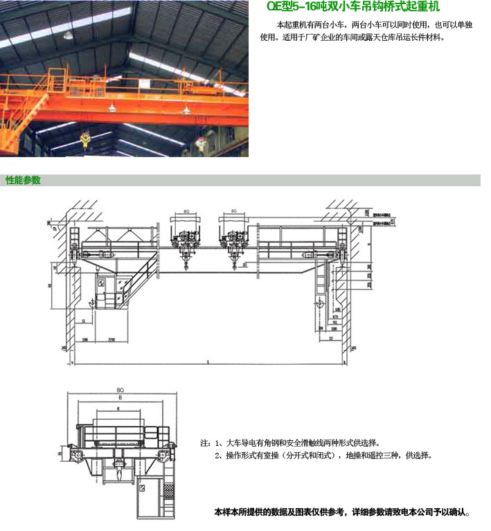本起重機(jī)有兩臺小車,兩小車可以同時使用,也可以單獨使用,適用于廠礦企業(yè)的車間或露天倉庫吊運(yùn)長件材料(木材,紙筒,管封,棒材)。
