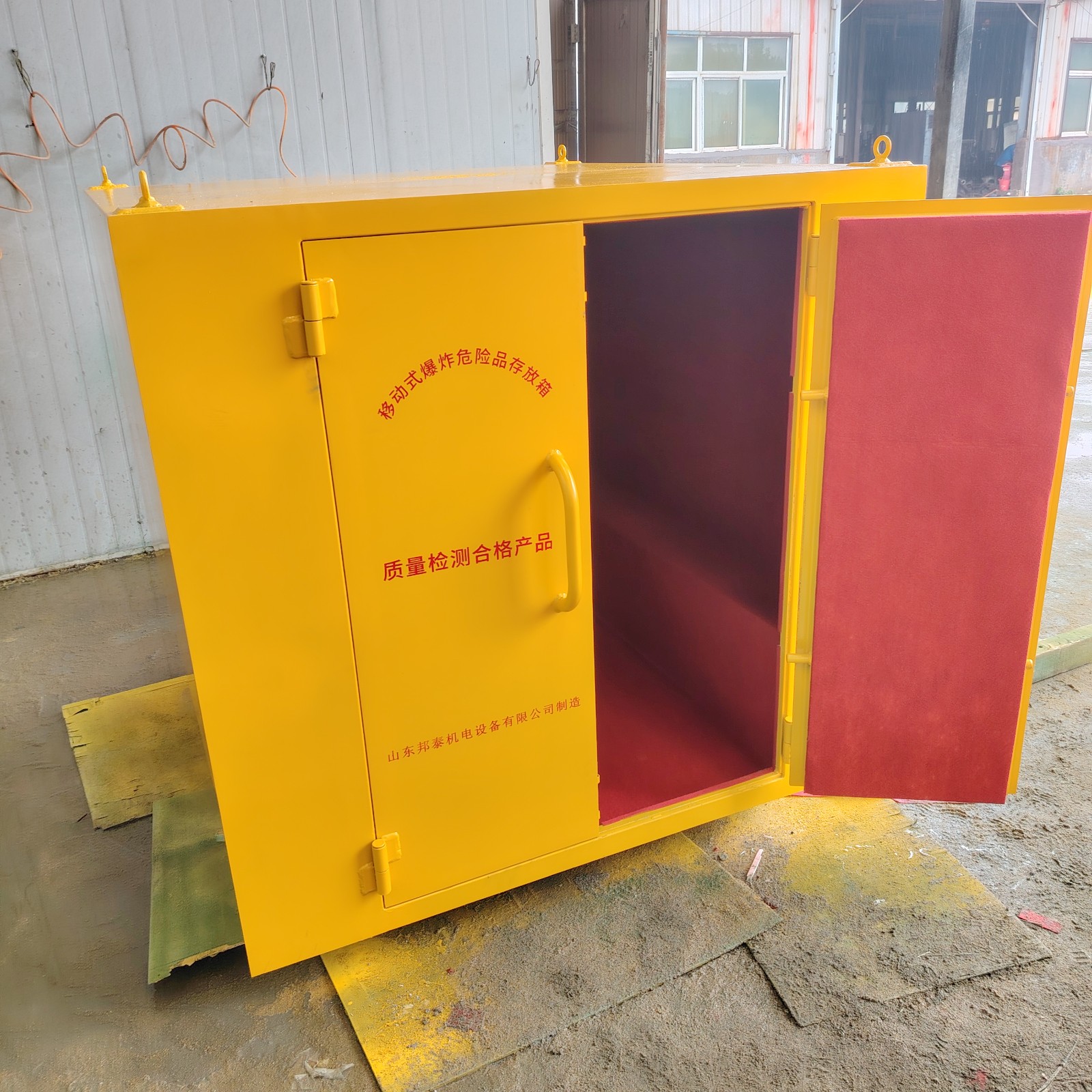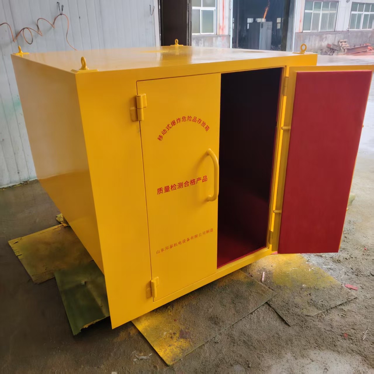 車廂部分:通常采用 6-8mm 厚的防爆鋼板制成,具有高強度和抗沖擊性能,能有效防止爆炸沖擊波和碎片的擴散。內部鋪設 10mm 厚的絕緣木板及 2mm 厚的防火防震防靜       電的阻燃墊,可起到緩沖、隔熱、防靜電的作用,確保爆破物品的安全存放。