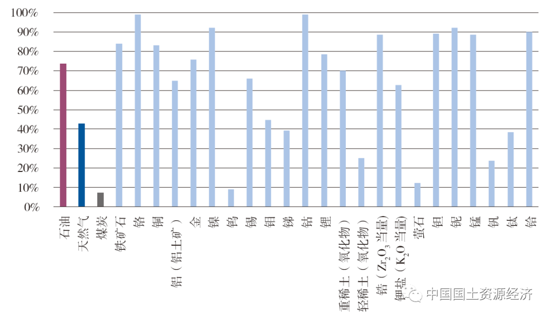 圖1 中國主要戰略性金屬礦產的對外依存度