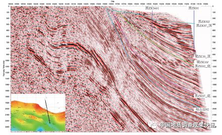 圖2 大浪灘-黑北凹地02-03013.5線從北到南層位解釋剖面