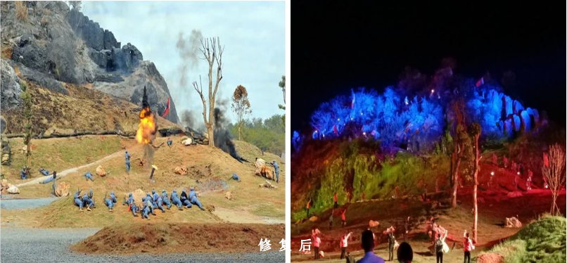 瑞金市引入社會資本,因地制宜將沙洲壩昌隆采石場、金源采石場廢棄礦區的工礦用地轉變用途,改造石料加工基地,因勢就形打造蘇區時期戰斗場景,建成了紅色故事“浴血瑞京”實景演出場地;改造采坑為人工湖,建成了水上娛樂區;改造廢棄堆土場為景區停車場;同時還建成了野戰區、射擊區、露營區等戰爭體驗項目區域。廢棄礦山整體建設成為4A級大型紅色實景演藝景區,進一步傳承和發揚了瑞金紅色文化。