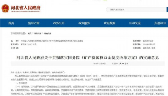近日,河北省政府辦公廳印發《河北省人民政府關于貫徹落實國務院<礦產資源權益金制度改革方案>的實施意見》,提出完善礦產資源稅費制度,全面推進礦業權競爭性出讓,嚴格限制協議出讓,合理調節礦產資源收入,有效遏制私挖亂采、賤賣資源行為。