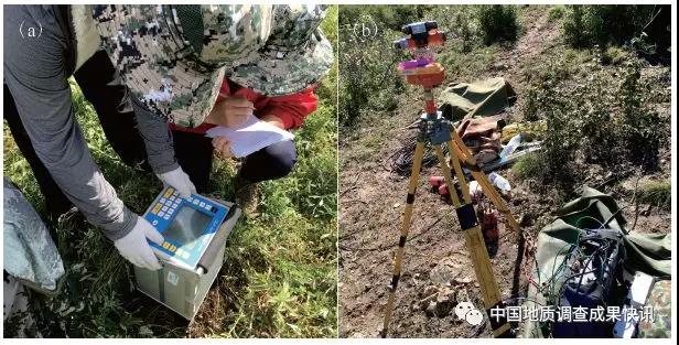 圖1 重力數據采集(a)和大地電磁測深數據采集(b)