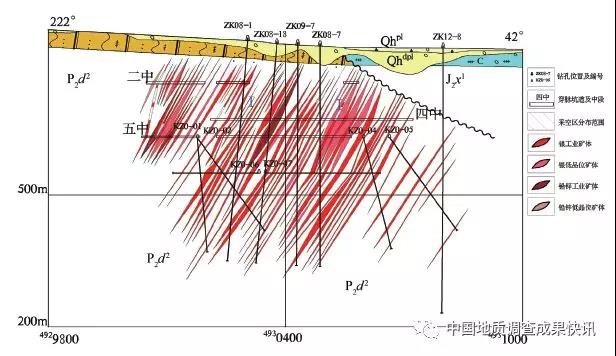 圖4 內蒙古自治區雙尖子山礦區00勘探線剖面圖