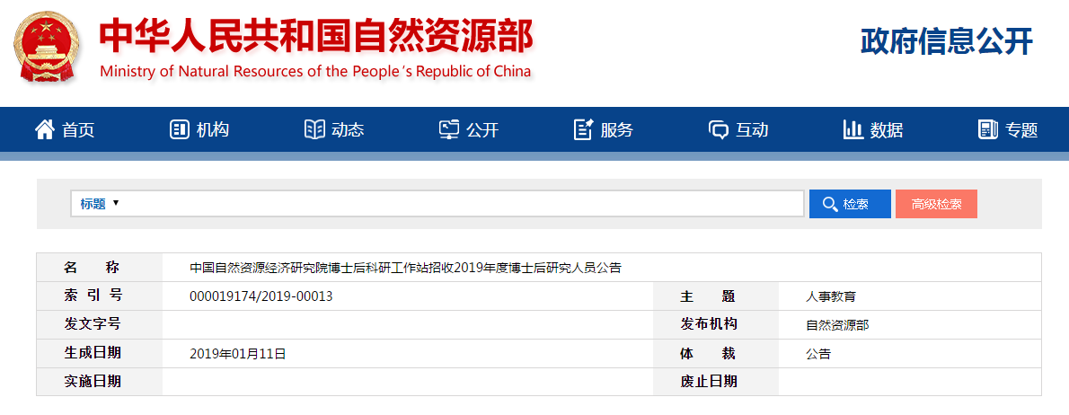 中國自然資源經濟研究院博士后科研工作站招收2019年度博士后研究人員公告