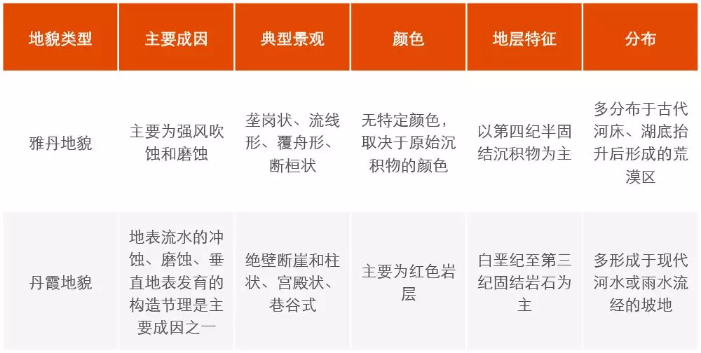 雅丹地貌與丹霞地貌的主要異同點
