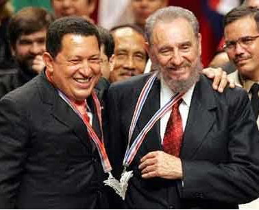 查韋斯與古巴卡斯特羅關系密切,卡斯特羅是古巴共和國、古巴共產黨和古巴革命武裝力量的主要締造者,是一位無產階級革命家及馬克思主義者。查韋斯受其理念影響較深,他不僅在國內搞改革,還把觸角伸向整個拉美乃至更大的范圍,而針對美國他無時無刻不在進行他的戰斗: