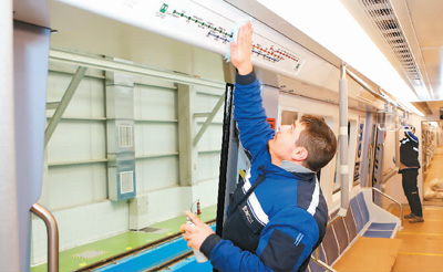 隨著“一帶一路”建設深入推進,中國與土耳其之間的經(jīng)貿(mào)關(guān)系日益密切,以中國中車為代表的軌道交通企業(yè)在土耳其市場頻傳佳訊。進入土耳其市場近十年來,中國中車走出一條從成品列車出口到本地化制造的發(fā)展之路,是中國企業(yè)在海外市場從“走出去”到“融進去”的一個縮影。圖為2018年12月12日,在土耳其安卡拉的株機-MNG公司,一名員工在新生產(chǎn)的地鐵車廂內(nèi)工作。新華社記者 秦彥洋攝