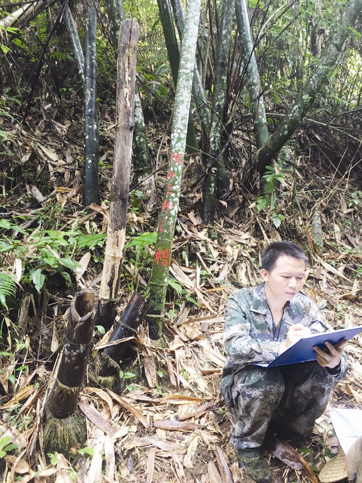 早上霧水很大,茫茫白霧擋住了遠處的山,也遮住了前方的路,卻沒能擋住采樣工作人員前行的步伐。他們艱難地向目標進發,直到太陽出來霧才散去,但沒一會兒,又曬得火辣,當隊員們走進深溝,因為有茂密的樹木和纏繞的老藤,有了片刻陰涼。