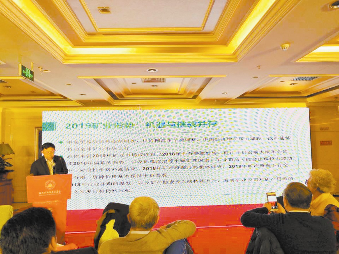陳從喜認為,總體來看,2019年礦業(yè)總體形勢是機遇與挑戰(zhàn)并存。2019年全球經(jīng)濟下行風險加大,中國經(jīng)濟增速放緩,預(yù)計GDP增速為6.3%;我國主要礦產(chǎn)品消費增速放緩,礦企生產(chǎn)成本在提高,礦業(yè)市場活力不足的狀況將延續(xù),非油氣礦產(chǎn)勘查投入可能繼續(xù)下滑并影響找礦成果;我國大宗礦產(chǎn)品進口量持續(xù)增長,礦產(chǎn)品對外依存度持續(xù)增高;隨著中國經(jīng)濟增長,中國礦產(chǎn)品的需求也會保持一定增速,特別是與新能源、戰(zhàn)略性新興產(chǎn)業(yè)相關(guān)的鋰、鈷、鎳、釩等小金屬及螢石、石墨、砂石骨料等非金屬的需求可能會爆發(fā)性增長;礦產(chǎn)勘查投資意愿增高,將集中在戰(zhàn)略性新興產(chǎn)業(yè)高技術(shù)礦產(chǎn)、非金屬礦產(chǎn)領(lǐng)域;未來海外礦業(yè)市場博弈激烈,礦業(yè)市場可能會出現(xiàn)較大波動,同時也是礦業(yè)企業(yè)海外投資并購的機遇期;中美貿(mào)易戰(zhàn)局勢逐漸明朗,供給側(cè)結(jié)構(gòu)性改革節(jié)奏調(diào)整,中國經(jīng)濟增長壓力減輕,或許能夠拉動全球礦業(yè)市場上行。□