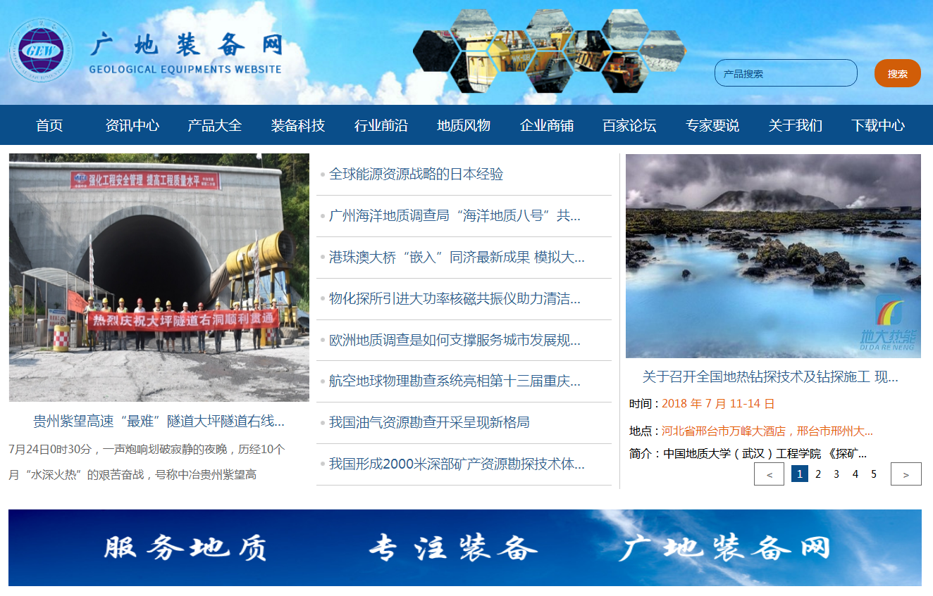 網(wǎng)站主要欄目包括資訊中心、產(chǎn)品大全、裝備科技、行業(yè)前沿、地質風物、企業(yè)商鋪、百家論壇和專家要說。