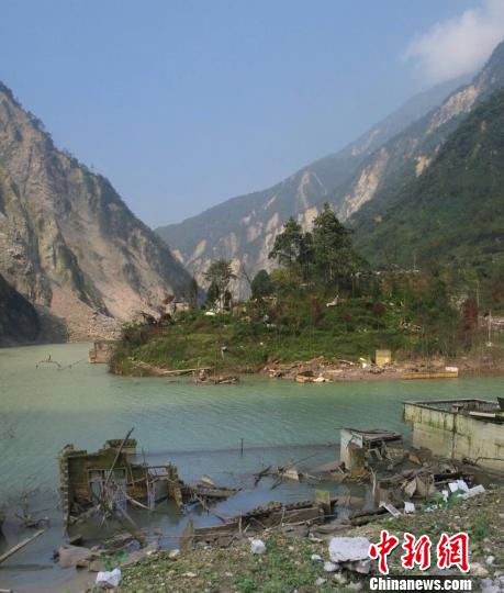 震后災害鏈效應之滑坡堵江形成堰塞湖。成都理工大學供圖