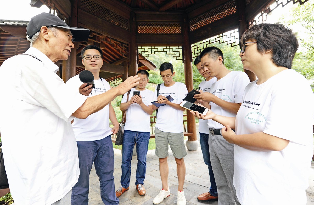 在銅陵市由廢棄礦山修復(fù)建成的公園內(nèi)采訪來此游玩的當(dāng)?shù)鼐用?/em>