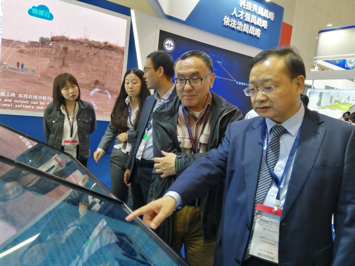 洪增林介紹,“地質(zhì)云•陜西”在中國(guó)地質(zhì)調(diào)查局的牽頭下,經(jīng)過兩年的研發(fā),已取得階段性的成果,是全國(guó)第二家建成的省級(jí)節(jié)點(diǎn),本次上線了礦產(chǎn)資源、地質(zhì)遺跡、地質(zhì)災(zāi)害防治、地下水資源、城市地質(zhì)、地?zé)豳Y源、農(nóng)業(yè)地質(zhì)、礦產(chǎn)地質(zhì)調(diào)查與規(guī)劃、衛(wèi)星遙感應(yīng)用、寶玉石以及地學(xué)科普等11個(gè)應(yīng)用專題,應(yīng)用極為廣闊。他現(xiàn)場(chǎng)為來展臺(tái)參觀的天津市和自然資源部的領(lǐng)導(dǎo)、專家進(jìn)行了現(xiàn)場(chǎng)演示,與他們進(jìn)行了深入交流,大家對(duì)“地質(zhì)云•陜西”給予了高度評(píng)價(jià)。