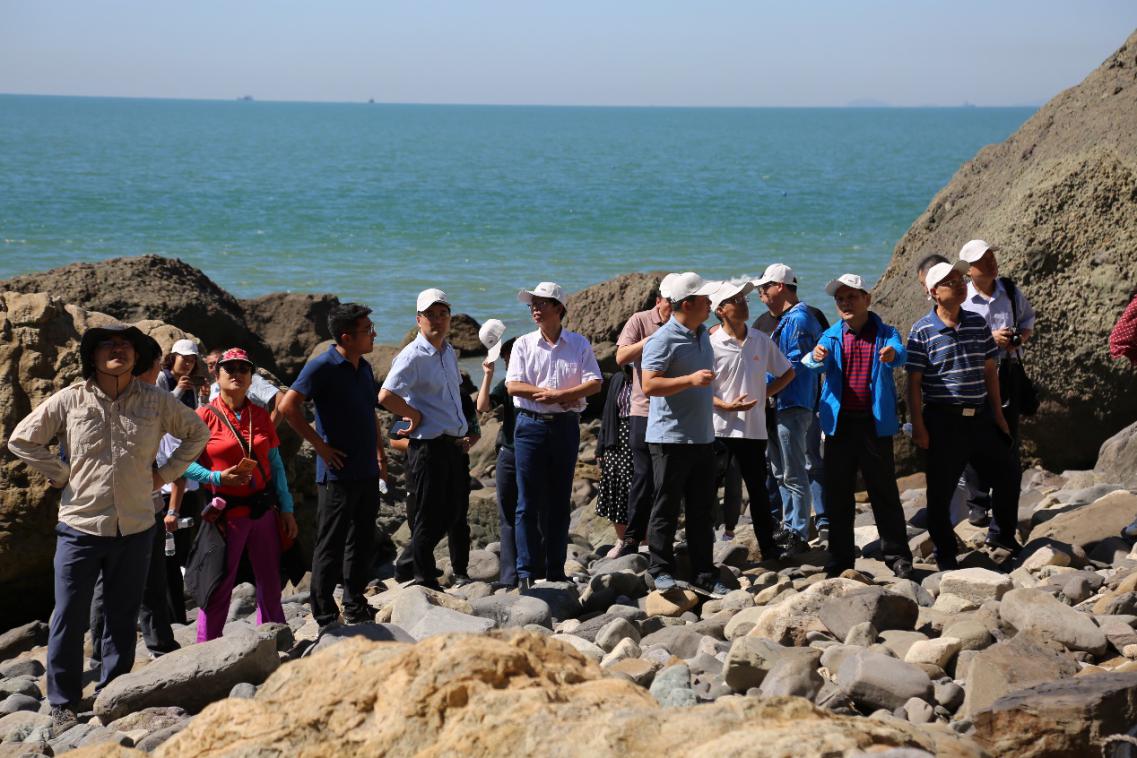 郝愛兵一行對靈山島省級自然保護區(qū)進行了調(diào)研,現(xiàn)場查看了“老虎嘴、千層崖、燈塔、洋礁洞、象鼻山、背來石”等地質(zhì)遺跡點科普解說牌、科普長廊的建設(shè)情況,并與工作人員進行了現(xiàn)場交流,詳細(xì)討論了地質(zhì)遺跡產(chǎn)生、演化過程。隨后在靈山島進行了座談交流,聽取了青島地質(zhì)院關(guān)于靈山島地質(zhì)遺跡詳細(xì)調(diào)查和地質(zhì)文化村建設(shè)工作情況匯報,集體觀看了靈山島地質(zhì)文化村(鎮(zhèn))申報視頻。