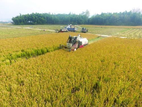 宜興市太華鎮(zhèn)茂花村富硒水稻收割