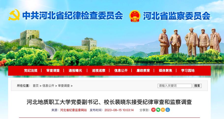 8月15日,河北省紀(jì)委監(jiān)委通報,河北省地礦局黨組成員、副局長李健,河北地質(zhì)職工大學(xué)黨委副書記、校長裴曉東涉嫌嚴(yán)重違紀(jì)違法,目前正接受省紀(jì)委監(jiān)委紀(jì)律審查和監(jiān)察調(diào)查。河北省地礦局官網(wǎng)顯示,河北地質(zhì)職工大學(xué)系該局局屬單位。