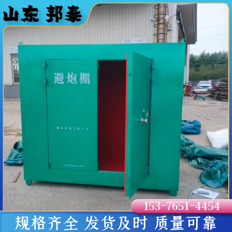 2. 避炮棚整體鋼板厚度為1cm,采用雙開門設計,內外都可以開鎖。