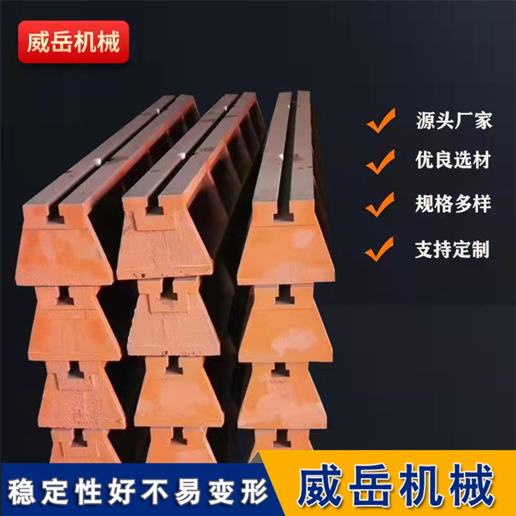鑄鐵地軌是一種可以裝配、試驗、焊接和檢驗大型設備的鑄梁平臺, 運用靈活方便, 可以根據設備的支撐點來調整位置, 更利于對設備的操作。遇到體積巨大的機械設備可以把幾個或更多的地軌拼接起來, 做為承載平臺使用。地軌是工業中不可缺少的重要設備。鑄鐵地軌、鑄鐵平板澆注溫度過高會引起砂型漲大,特別是具有復雜砂芯的灰鑄鐵件,當澆注溫度≥1420℃時廢品增多,澆注溫度為1460℃時廢品達0.50。在生產中,利用感應電爐熔煉能較好地控制鐵液溫度。