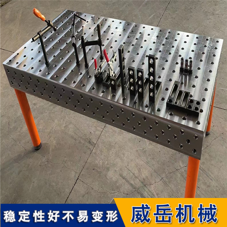 三維柔性焊接平臺采用可拆卸式條狀臺面板,臺面可方便地延伸和擴展,組合。T型槽結構與滑塊結合,各種夾具和定位模塊可在臺面上方便地定位,并連續調節。多樣性的變化衍生產品,針對不同的用戶群體。廣泛應用于汽車制造業,建筑業,機械工程,板金加工,樣品生產和產品研發等,并廣泛應用與機器人配套的焊接工裝。