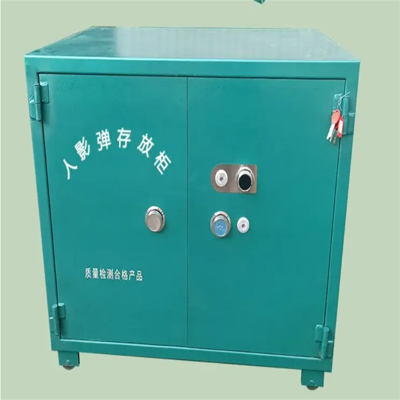 人影彈柜外置6.0mm~8.0mm厚防爆鋼板,內(nèi)置10.0mm絕緣木板,底部鋪設(shè)有2.0mm防靜電膠墊,四周鋪設(shè)有抗震阻燃?xì)帧fi具采用的是GA機(jī)械鎖具兩把,以及一把機(jī)械轉(zhuǎn)盤密碼鎖。