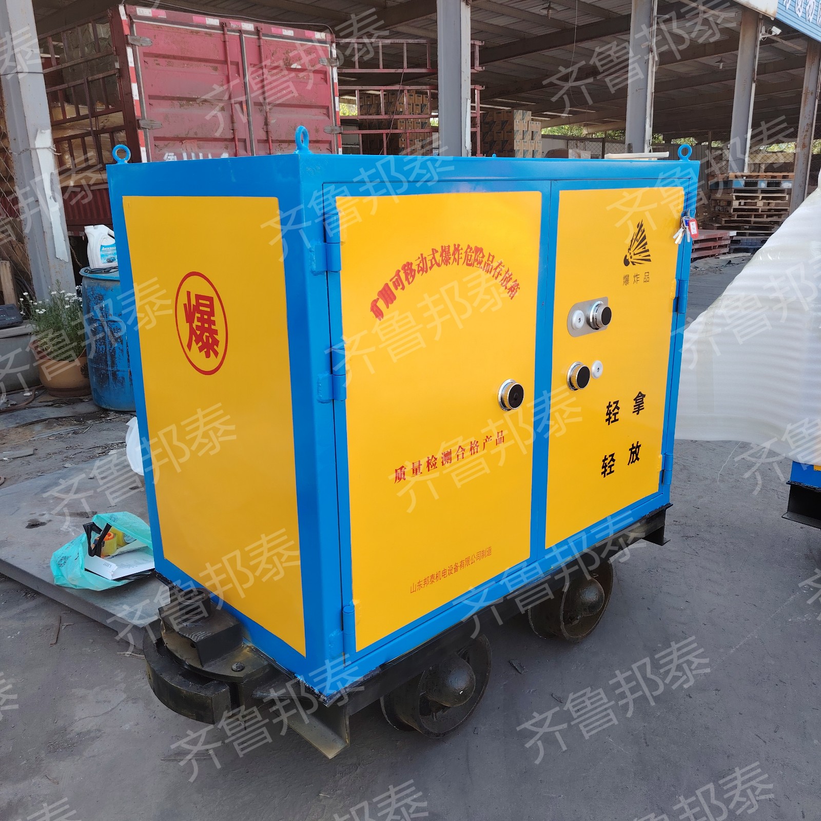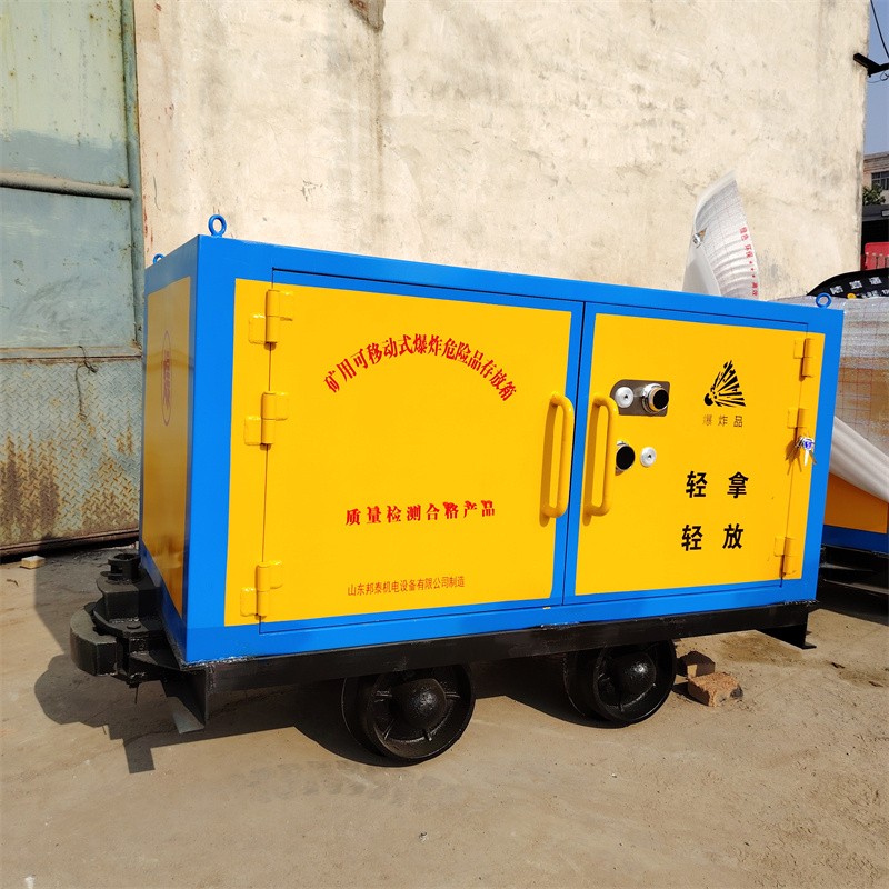 有軌爆炸物品運輸車滿足大部分有軌礦山井上井下軌道運輸爆破器材的要求,集儲存,運輸為一體的功能,具有防爆、防震、防盜、防火、防靜電等特點,為礦山運輸爆破器材帶來了很大的便利,同時也保障施工安全。