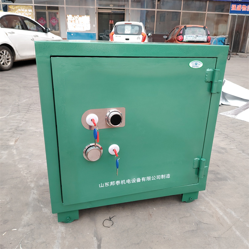 移動式爆炸危險品存放箱,也叫爆炸物品存放柜、火工品存放柜、炸藥臨時保管箱、雷管防爆箱。體外置6.0mm~8.0mm厚防爆鋼板,內置10.0mm絕緣木板,底部鋪設有2.0mm防靜電膠墊,四周鋪設有抗震阻燃氈。鎖具采用的是GA機械鎖具兩把,以及一把機械轉盤密碼鎖箱,爆破員和安全保管員分開保管鑰匙,同時使用打開領取火工品。