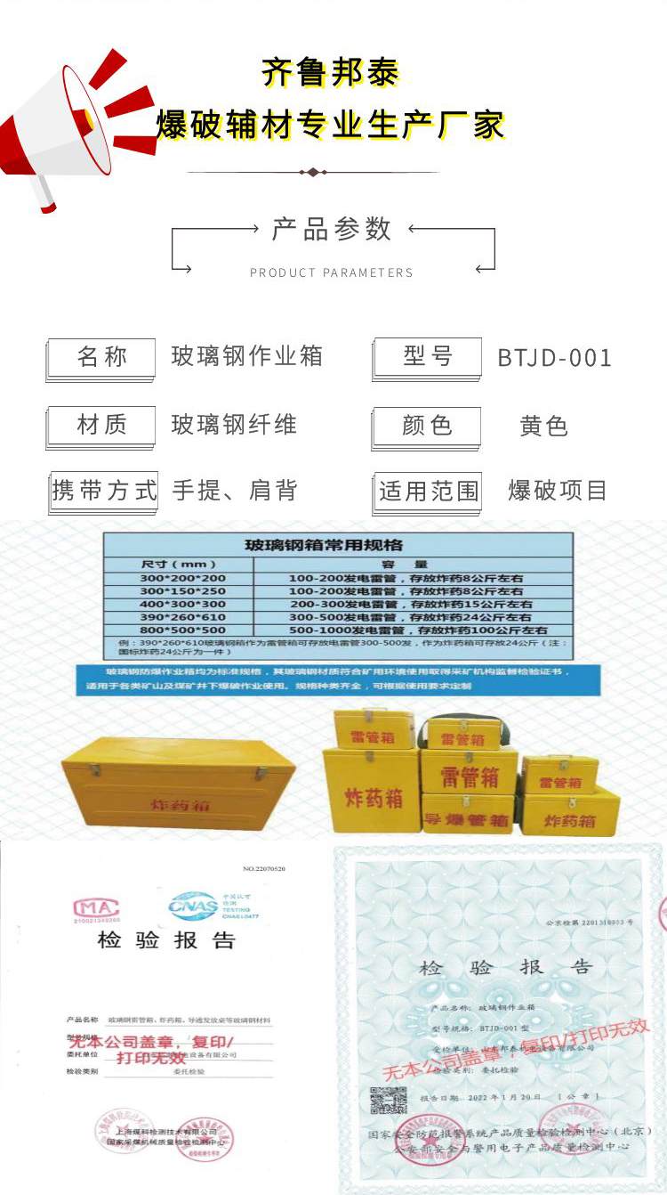 玻璃鋼材質炸藥箱、雷管箱具有多項出色的特點和功能: