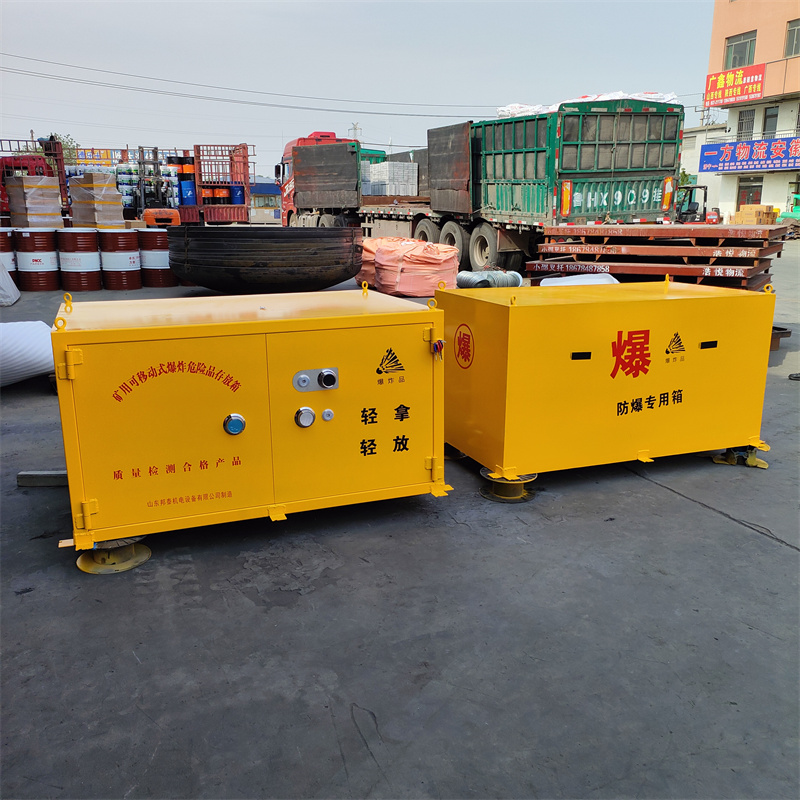 車載危險品存放箱是一款專門放置在皮卡車上來運輸危險品的。常規顏色為黃色,也可根據需求。門板為6-8mm厚防爆鋼板,內襯為10mm厚絕緣木板,內置2mm厚防靜電氈,具有防爆,防靜電,耐用,防撞擊等特點。相對于有軌炸藥運輸車,它是沒有輪子的可直接放到皮卡車上。 門鎖為雙機械密碼鎖,雙人雙鎖且實現雙鎖聯動機制,開門方式可定制,符合國家爆炸危險品防盜要求。 證書齊全,可供檢查使用。防爆性能高,更安全。