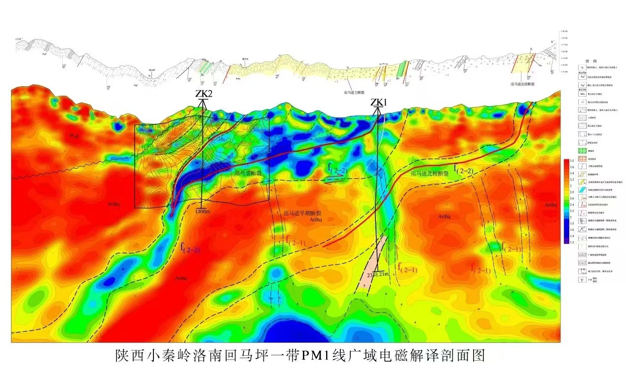 此外,勘查工作中,還綜合運用了“三位一體”找礦預測理論,并創新性采用了多種先進的物探技術手段,成功探索出了一套適合小秦嶺金礦田深部找礦的有效勘查技術方法組合。這一組合包括地質、重力、航磁大比例尺面積性測量、廣域電磁測深、大功率激電剖面測量以及鉆探驗證等多個環節,實現了深部找礦在方法組合、成礦理論、成礦類型和找礦空間等方面的全面突破。