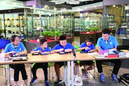 “地球形成之初,地核的引力把宇宙中的塵埃吸引過來,凝聚形成山石,經過風化,變成了巖石……”隨著實物資料中心教授級高工蘇桂芬的講解,參加《走進巖石3+3+3》科學實驗課堂的同學們逐漸了解了巖石的成因、分類及其特點等知識。