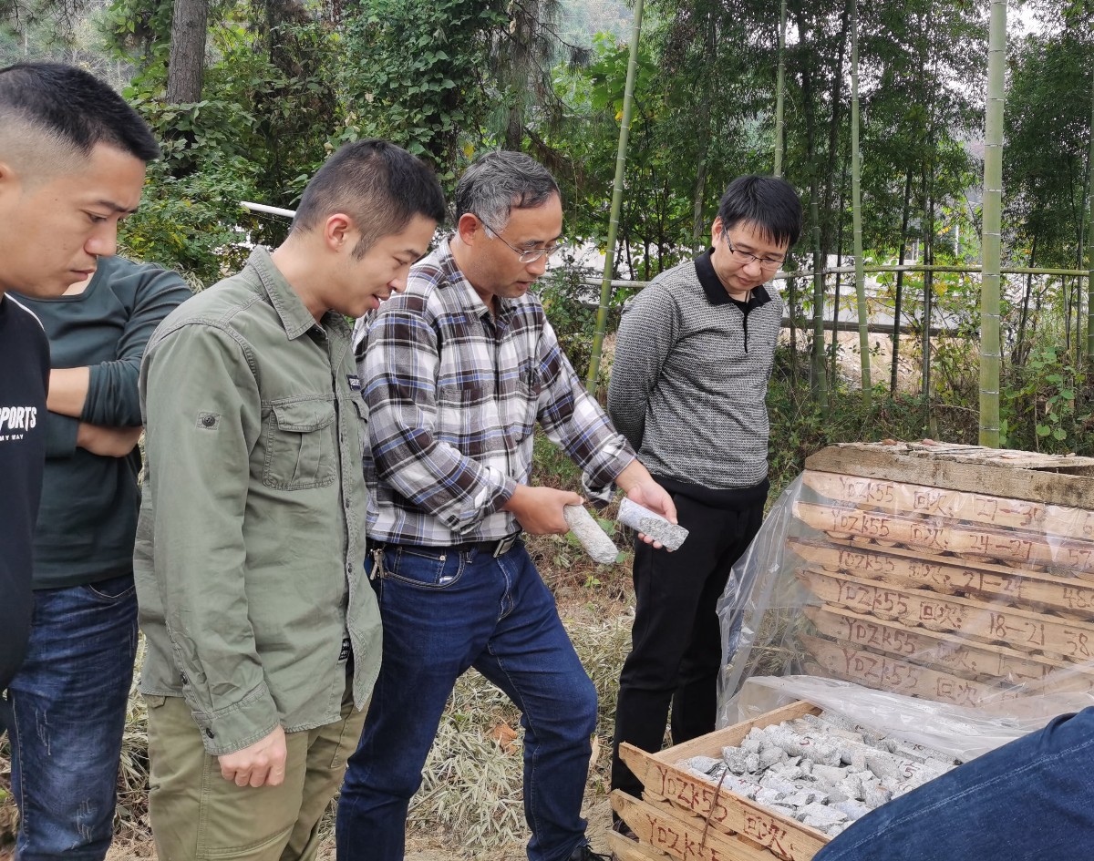 專家組野外查看礦泉水鉆孔巖芯
