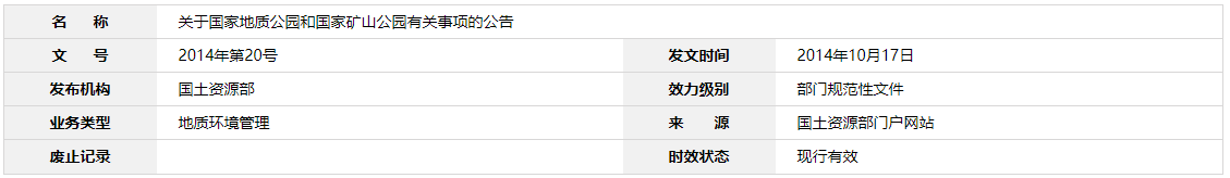 按照國務院行政審批改革精神和國土資源部的工作安排,現將“國家地質公園”與“國家礦山公園”有關事項通知如下: