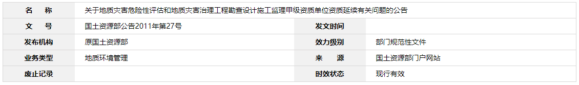 關(guān)于地質(zhì)災(zāi)害危險(xiǎn)性評(píng)估和地質(zhì)災(zāi)害治理工程勘查設(shè)計(jì)施工監(jiān)理甲級(jí)資質(zhì)單位資質(zhì)延續(xù)有關(guān)問(wèn)題的公告