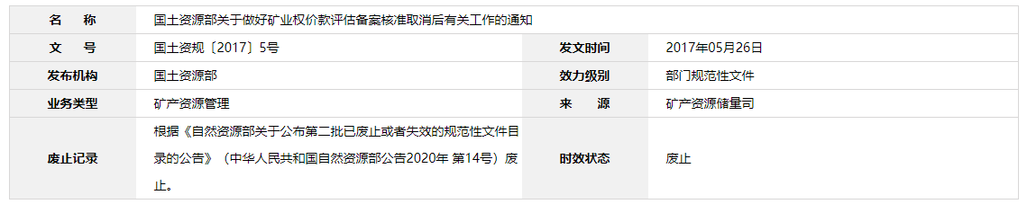《國務院關于取消非行政審批事項的決定》(國發〔2015〕27號)和《國務院關于第一批取消62項中央指定地方實施行政審批事項的決定》(國發〔2015〕57號)已經取消“礦業權價款評估備案核準”,并要求切實加強事中事后監管。各級國土資源主管部門不再受理備案核準申請,不再進行合規性審查和出具備案文件。按照國務院關于簡政放權、放管結合、優化服務的要求,為進一步規范礦業權價款評估工作,加強監督管理,現將有關事項通知如下: