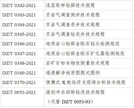 《淺層取樣鉆探技術規程》等10項推薦性行業標準已通過全國自然資源與國土空間規劃標準化技術委員會審查,現予批準、發布,自2021年5月1日起實施。標準編號及名稱如下:
