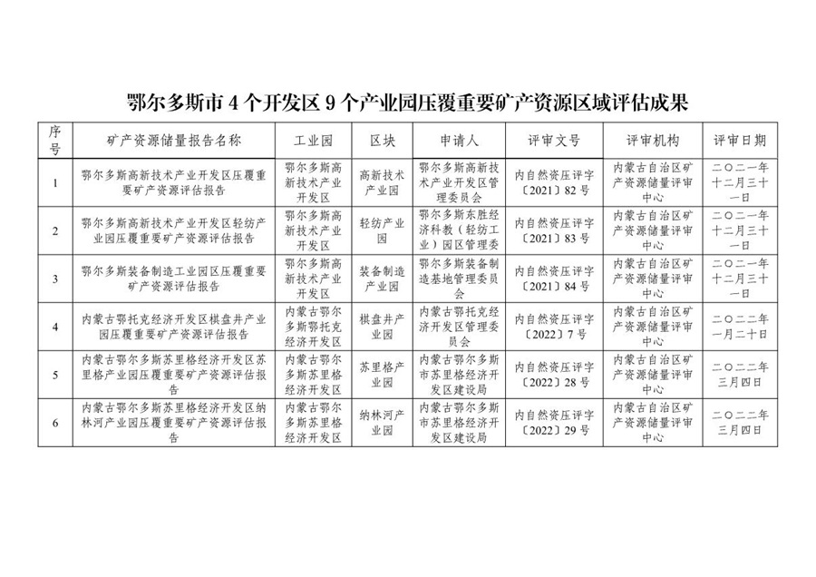 內容來源于:鄂爾多斯市自然資源局,原文鏈接:鄂爾多斯市開發區壓覆礦產資源區域評估應用指南(試行)