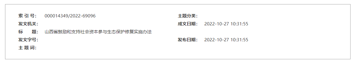 文章來源于:山西省自然資源廳,原文鏈接:山西省鼓勵和支持社會資本參與生態保護修復實施辦法