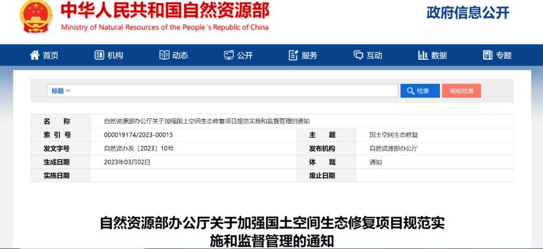 近日,自然資源部下發(fā)了《關(guān)于加強(qiáng)國土空間生態(tài)修復(fù)項(xiàng)目規(guī)范實(shí)施和監(jiān)督管理的通知》(自然資辦發(fā)〔2023〕10號)。