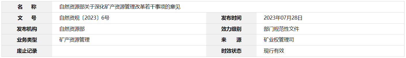 文章來源于:自然資源部網站,原文鏈接:自然資源部關于深化礦產資源管理改革若干事項的意見