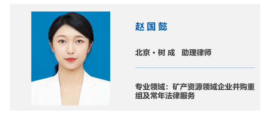 趙國懿本科畢業于中南財經政法大學法學專業,研究生畢業于英國布里斯托大學國際商法專業。主要從事領域為礦產資源領域企業并購重組及常年法律服務,入職以來已協助為華鈺礦業、寶山礦業、金茂集團、新疆中硅、九有股份等企業提供常年和專項法律服務。